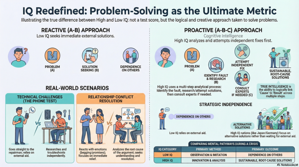 Intelligence is not a fixed inheritance; it is a cognitive muscle exercised through the A-B-C process of independent investigation. To elevate your own intellect is to transition from a “Watcher” to a “Creator.” It requires the discipline to look at a failure—whether technical, emotional, or professional—and refuse to skip the “B” phase of investigation.